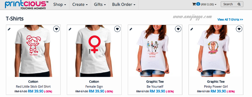 7. Kalau pening dah tak tahu nak pilih apa, ni diaa pelbagai koleksi T-shirts sama ada korang nak personlized atau pilih sahaja design yang cantik dan sesuai untuk gadis kesayangan. Murah pula tu, berbaloi dengan kualiti yang baik.