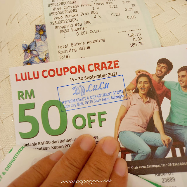 Rupa-rupanya, dari 15hb hingga 30hb September 2021 ni, ada Lulu Coupon Craze di LuLu Setia City Mall, Setia Alam. Berbaloi sungguh la shopping tadi. Cashier suruh ana redeem Coupon Beli Belah bernilai RM50 di Kaunter Khidmat Pelanggan.